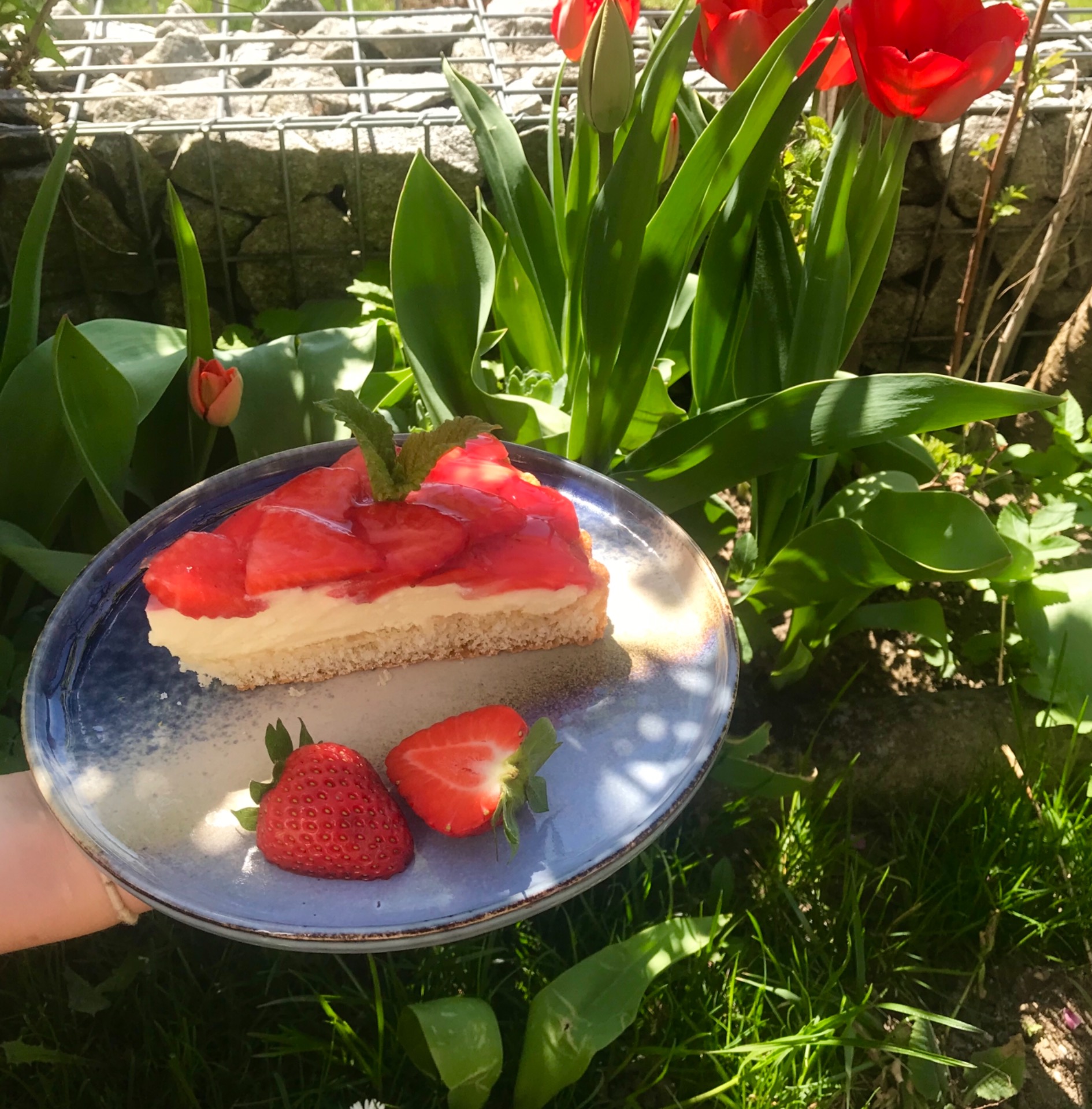 Zum Schluss wird das Gelee auf die Erdbeeren verteilt und kalt gestellt.