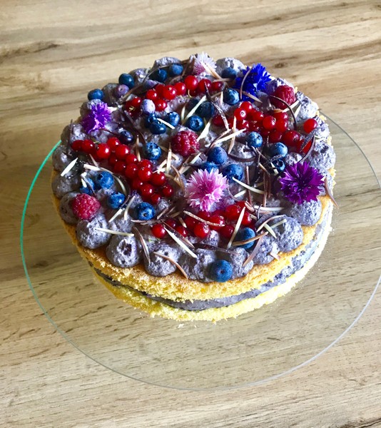 Mit den Heidelbeeren und dem Staubzucker sowie dem Zitronensaft vermengen und 1/3 der Creme in einen Spritzsack füllen.