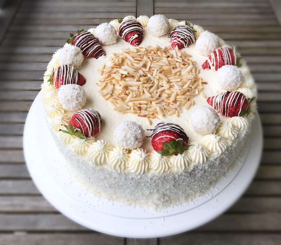 Zum Abschluss wird die Torte mit Schlagobers verziert und beliebig dekoriert.