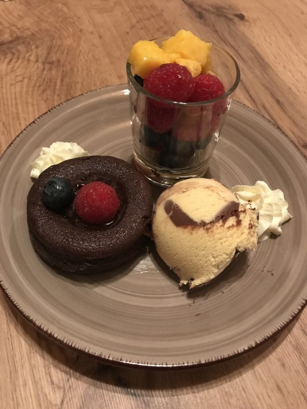 Schokoküchlein mit Früchte der Saison