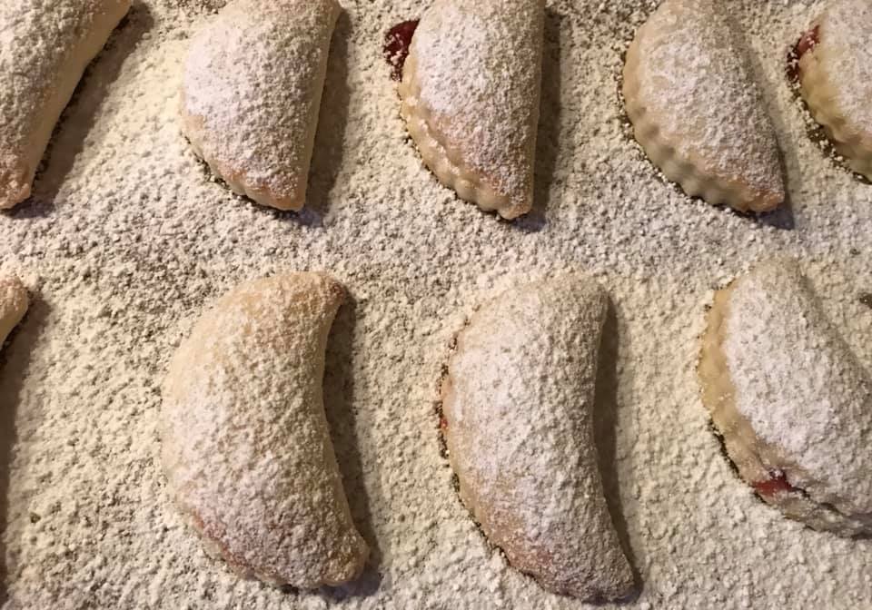 Runde Scheiben halb mit Herz halb ohne ausstechen und bei 180 Grad Heißluft backen.