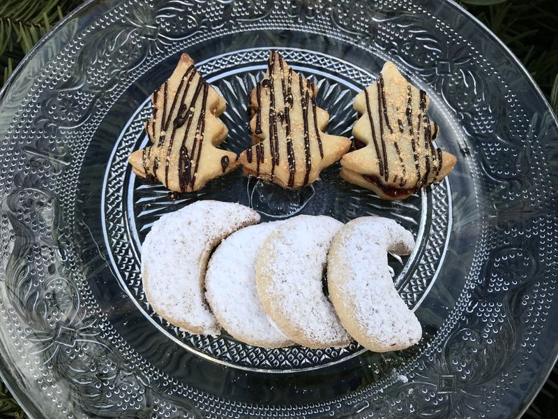 Alle Zutaten zu einem Teig kneten und ca. 3 Stunden kalt stellen. Den Teig ausrollen und Bäumchen ausstechen. Bei 180 Grad Heißluft ca. 7 Minuten backen.